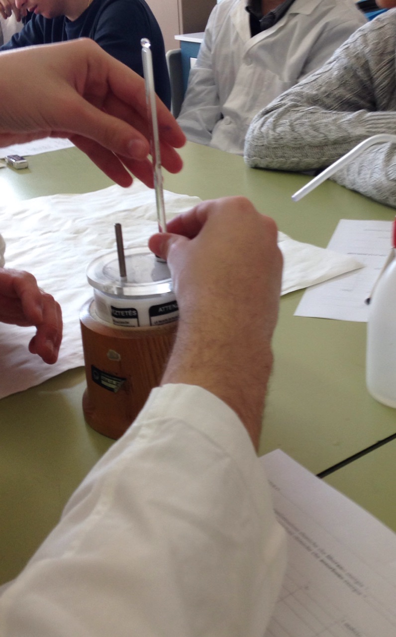- inserire in un becher il termometro, fissato al sostegno in modo che il bulbo sia a 2-3 cm dal fondo;