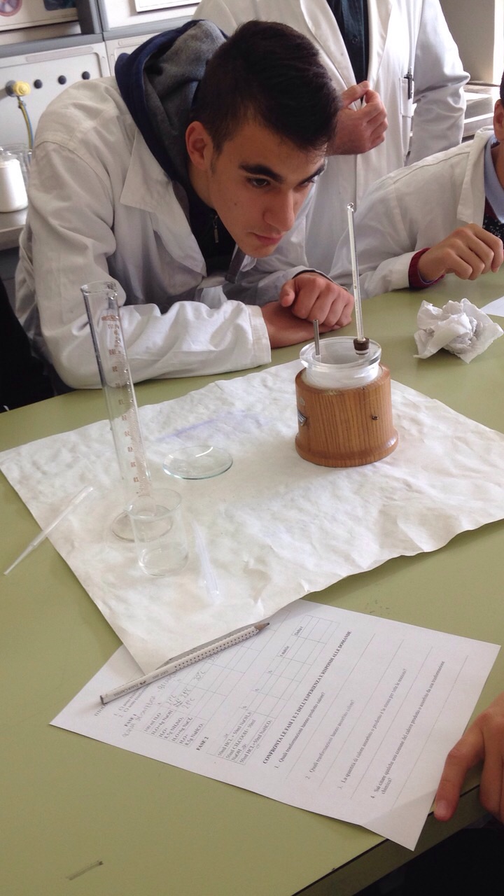 Si procede utilizzando il calorimetro nel determinare il calore di reazione nei vari casi indicati. Gli studenti divisi in piccoli gruppi di due persone, hanno preparato le diverse soluzioni, hanno rilevato le temperatura dei reagenti e quindi delle soluzioni ad intervalli di tempo regolari e hanno calcolato le variazioni di temperatura.