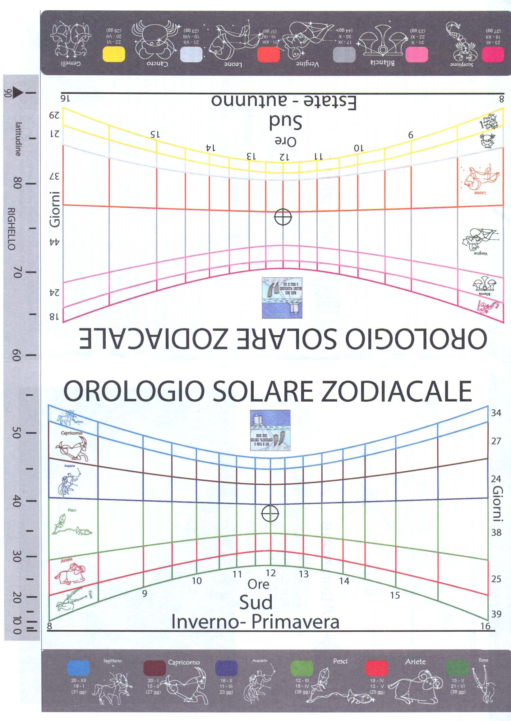 L'attività prevede la realizzazione di una meridiana solare zodiacale, uno strumento che indica le ore diurne dalle 8 alle 16 e il segno zodiacale corrispondente alla posizione apparente del Sole lungo l’eclittica. Costituisce con un set di altri modelli e dispositivi (vedi anche esperimento 63-Scienze), un ciclo di esperienze didattiche che permettono di “rovesciare” la presentazione tradizionale dei temi astronomici, costituendo la base sperimentale dell'osservazione e comprensione dei fenomeni naturali, collegati ai moti della Terra nello spazio, e all'interazione del pianeta con l'ambiente del Sistema solare, particolarmente la Luna e il Sole.