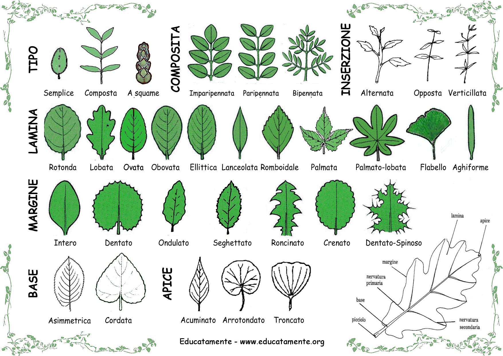 Conoscenze base di Morfologia delle piante (la foglia e il fiore);